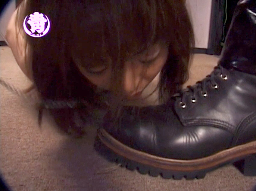 靴を舐めるM女 靴を舐めさせられるM女 靴舐め AVビデオ かわいそうな女優画像。