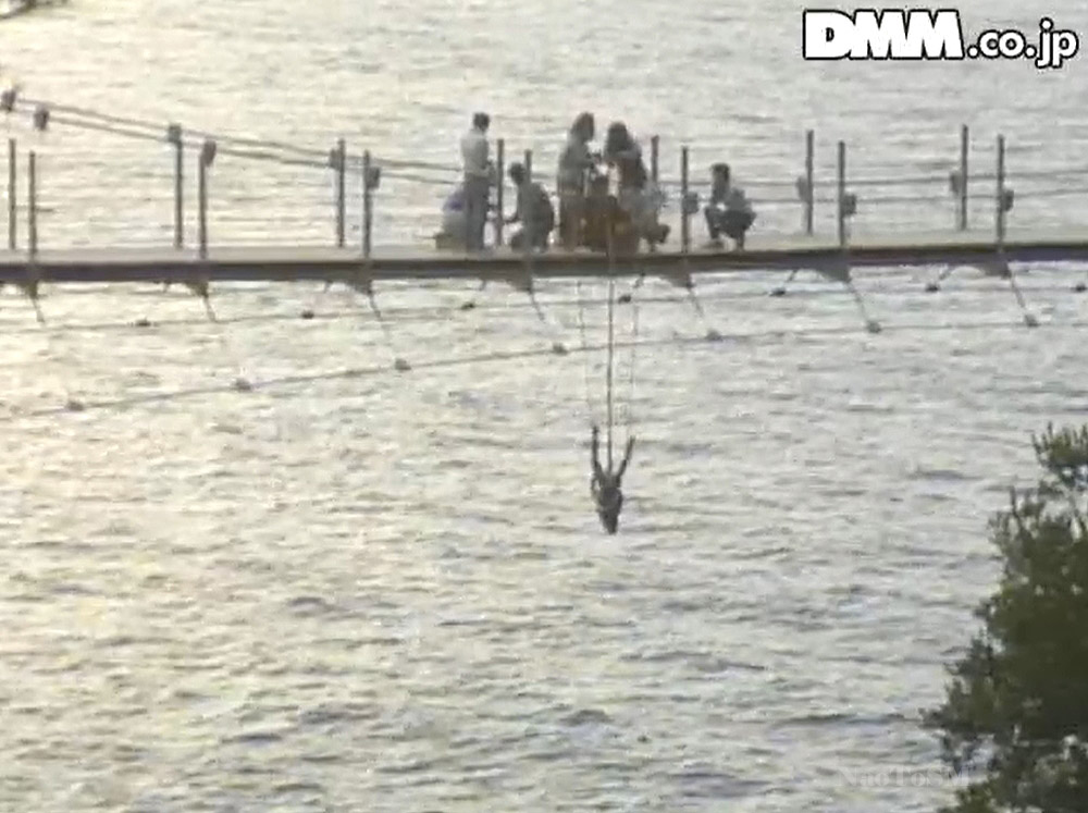 「立川ひとみ」吊り橋から逆さ吊りにされ、ビルの高層階から逆さ吊りにされる恐怖のSMフルコースを受ける女の画像。