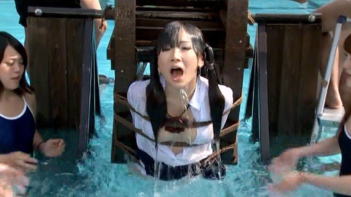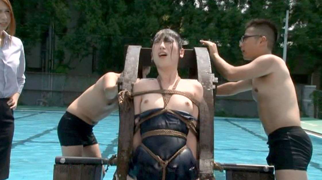 水に沈められる直前、一切の抵抗が出来ずただ拷問に耐えるしかない女子。