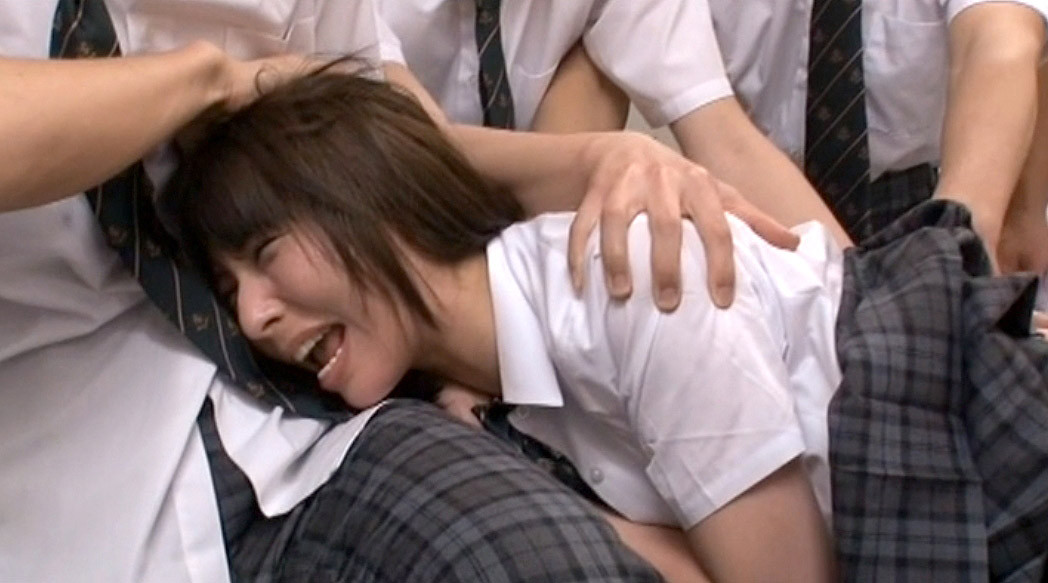 男子生徒に囲まれて身体を弄ばれる集団性的いじめを受ける晶。