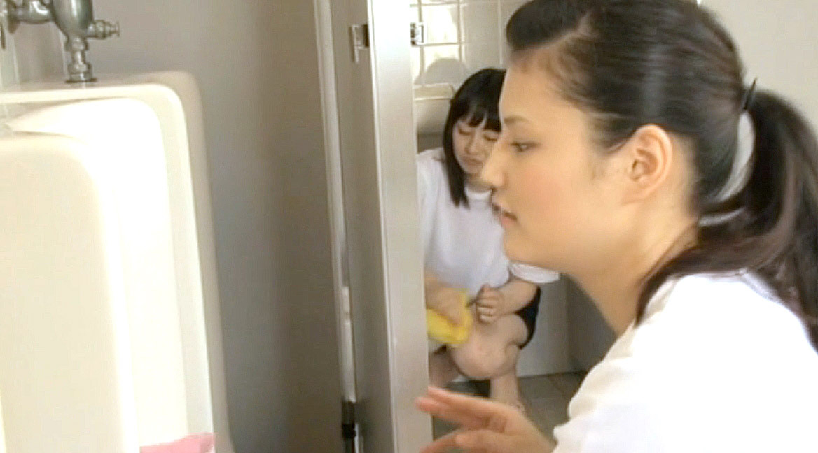 並んで男子便所を掃除させられる女子、裸足に素手で便所掃除をさせられる女。