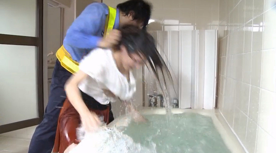 水に顔を押し付けられて水責めされる女、せな。