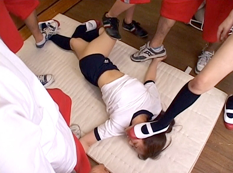脚に引っかかるショーツが惨め、股を開かされ、極限の恥ずかしい姿で押さえつけられる女。