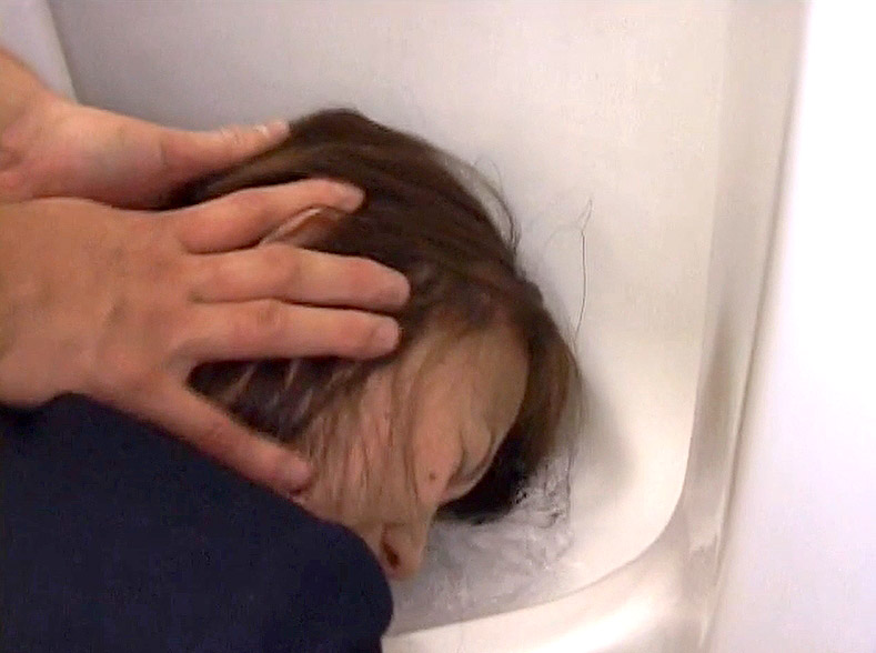 哀れ、便器に顔を押し付けられそれをビデオで撮られる女。
