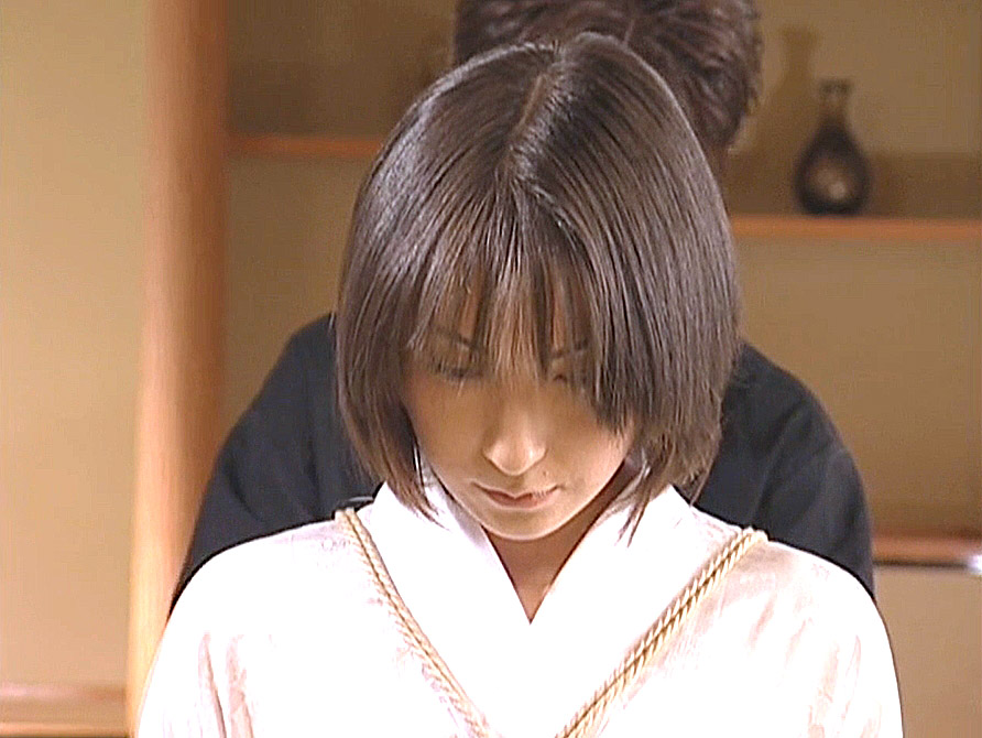 調教師の導くままに、正座して、素直に着物を脱ぎ縛られていくM女夜也の緊張した雰囲気。