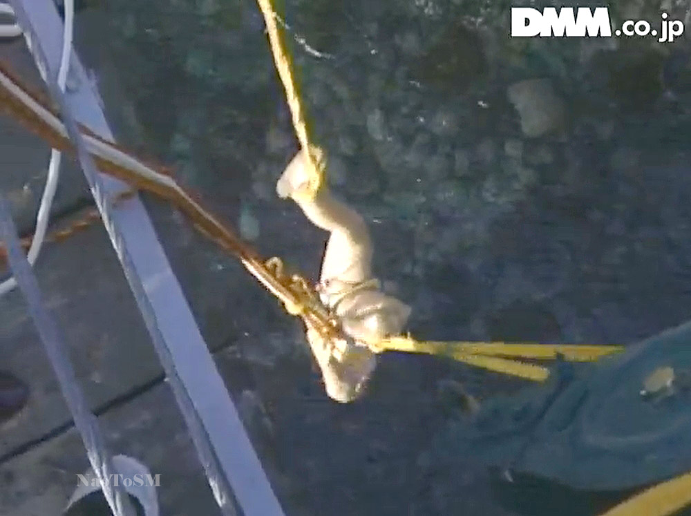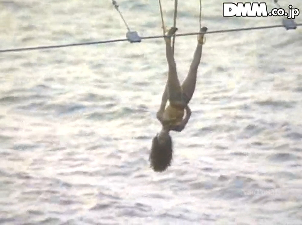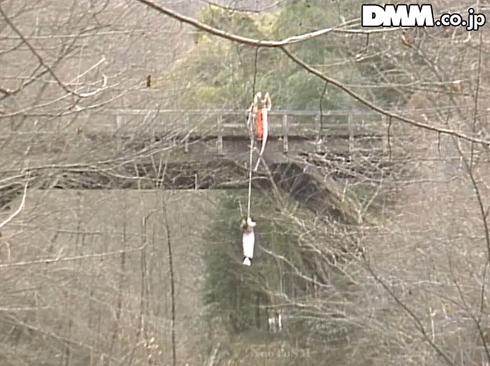 橋から吊り下げられて恐怖の責めを味わうM女。
