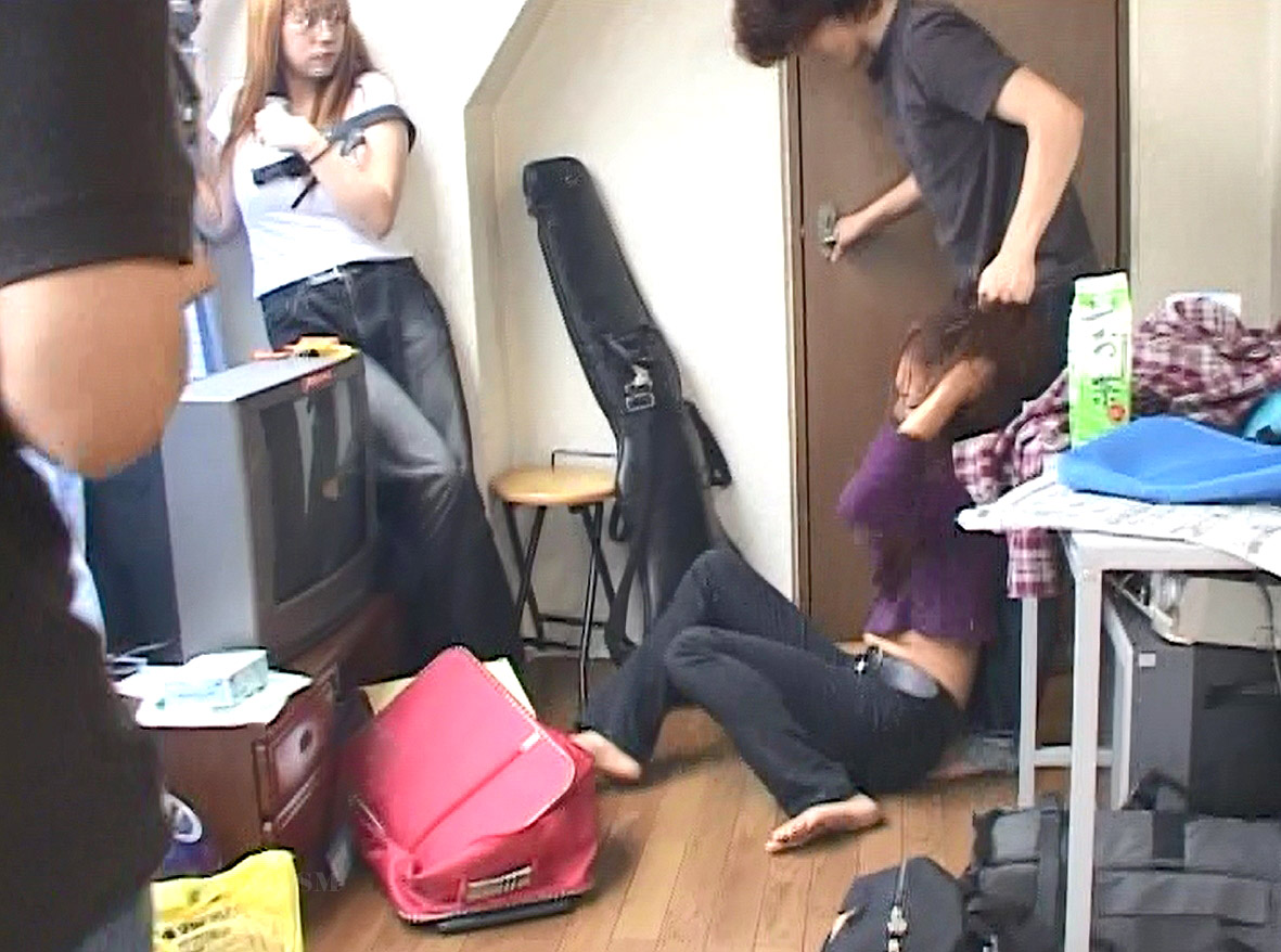 髪の毛を掴まれて引っ張られて引き倒される残酷な虐待を受ける女、愛。