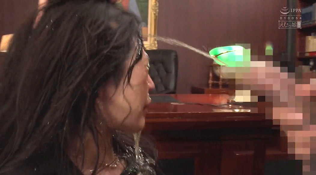 喉奥深くで放尿され、こらえきれずに吐き出す女、朱里。