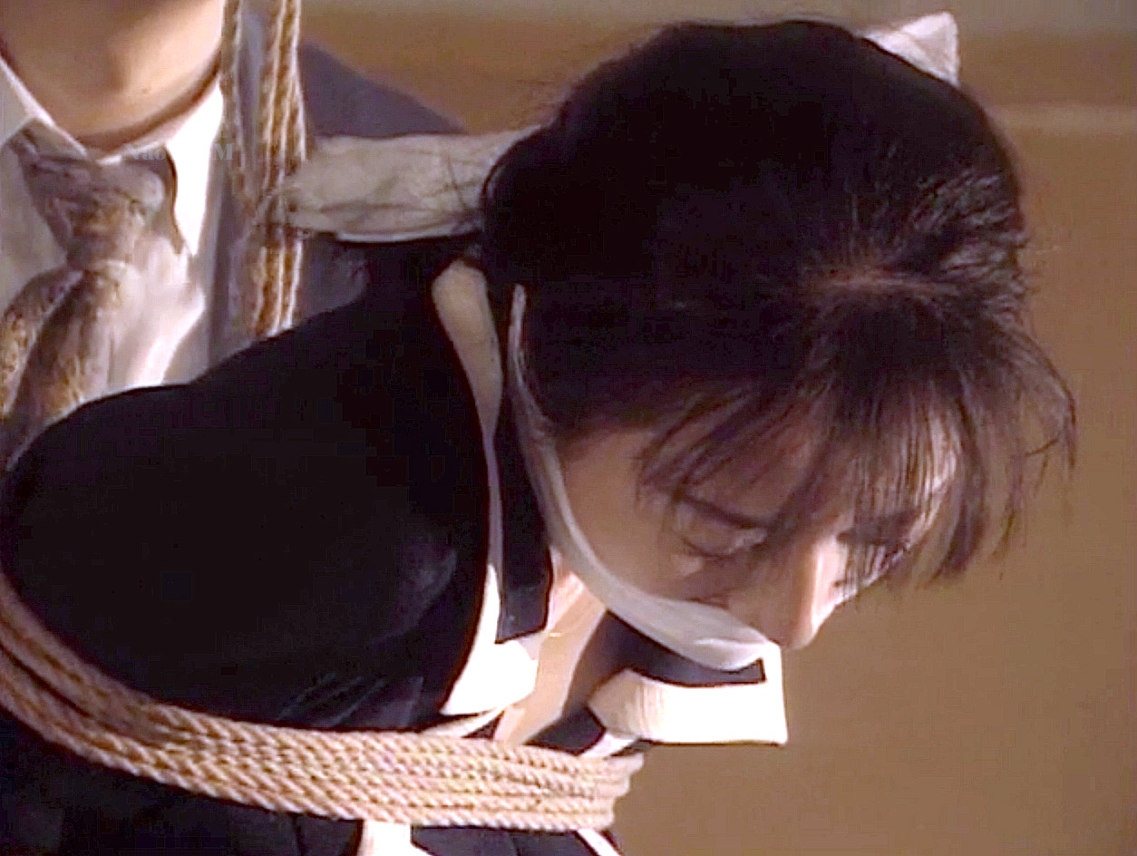 屈辱的に縛られたまま、望まぬ性交を強要されて辛い表情で犯されるOL女、ようこ。