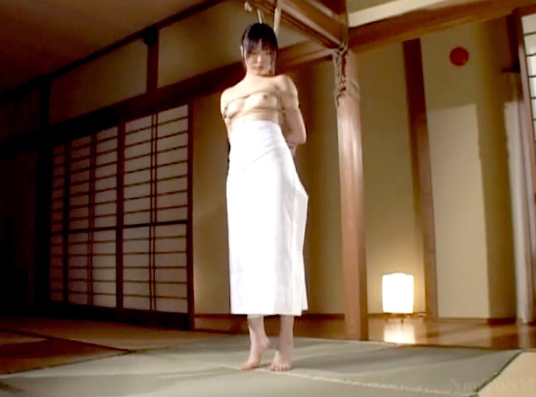 爪先立ちに縛り上げられてSM調教の覚悟を決める女、志帆。