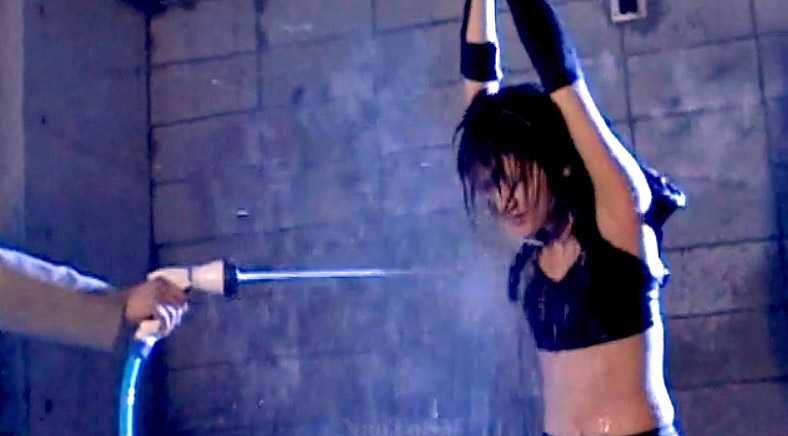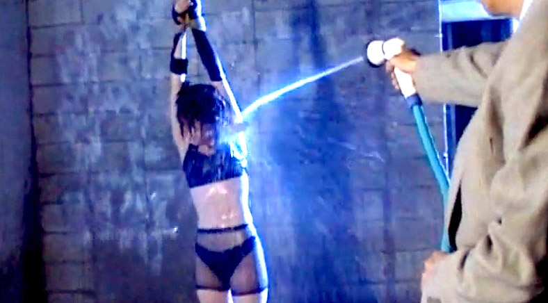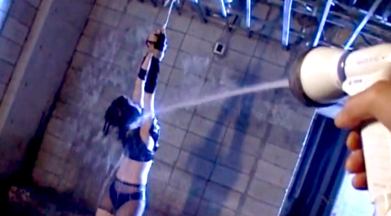 容赦なく高圧ホースで顔面を水責めされて悲鳴を上げる女、凛。