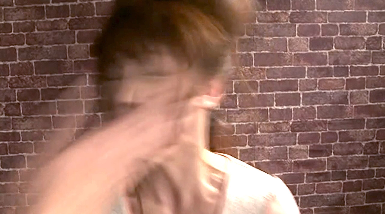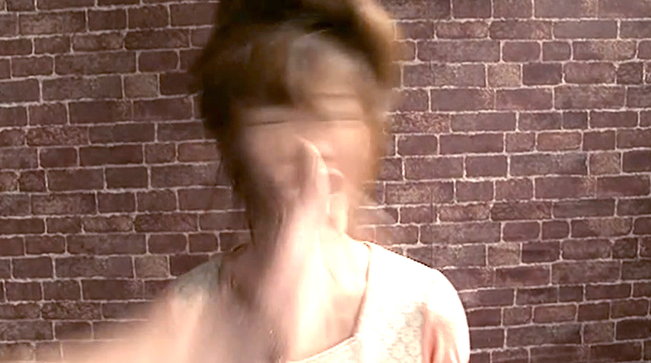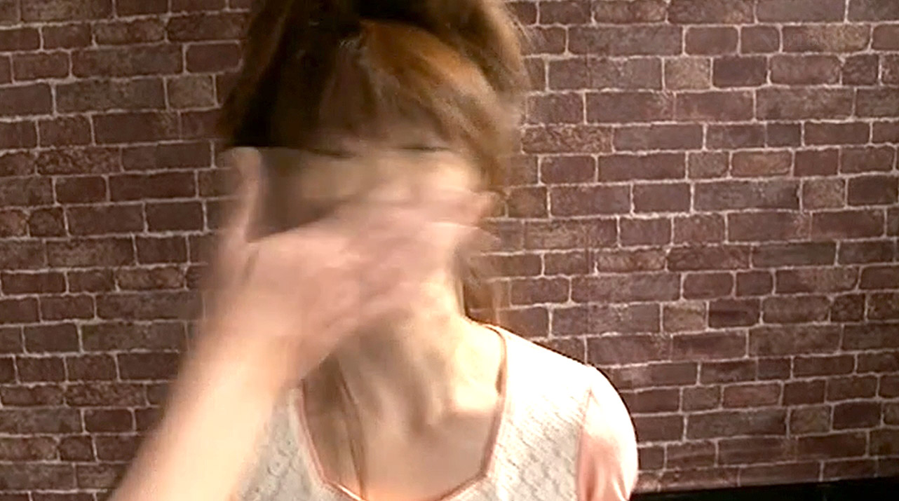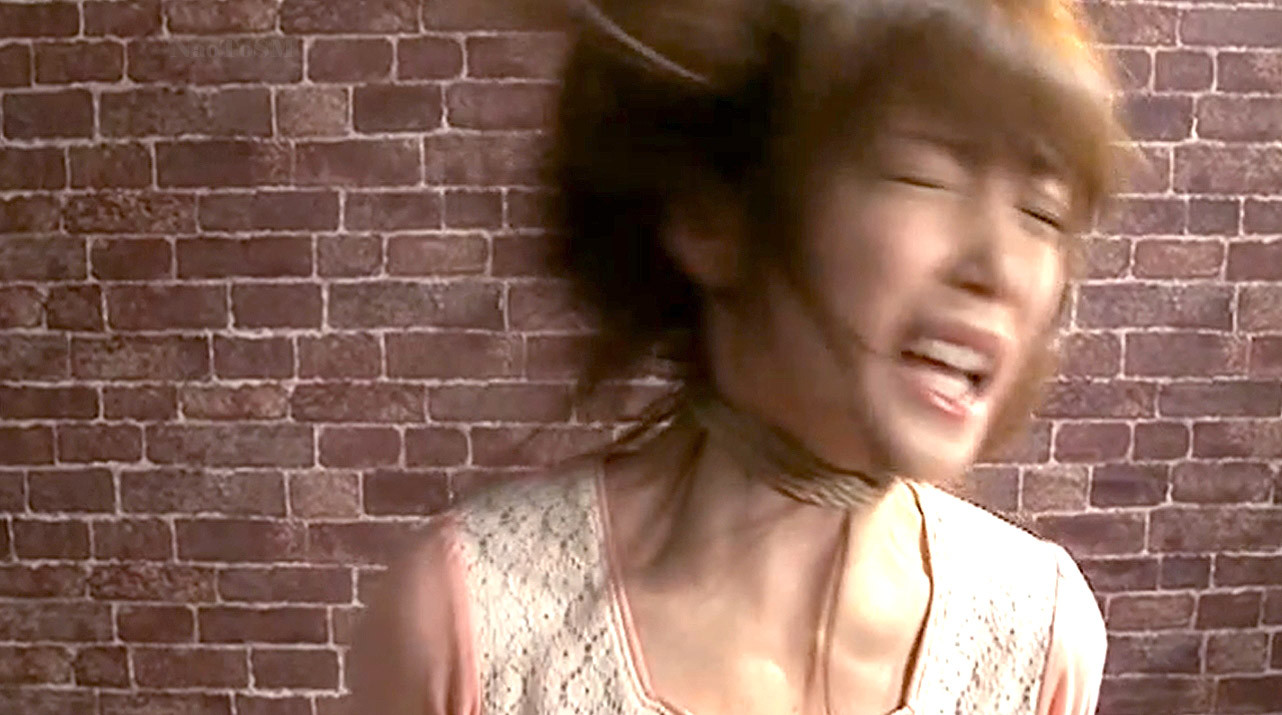 髪の毛吊りにされたまま強烈無比なビンタをされる女、楓花。
