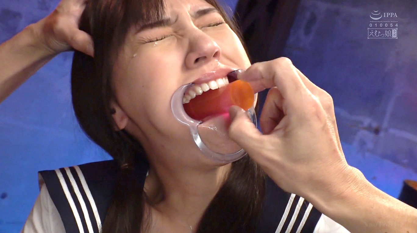 食道拡張の苦しみと痛みに涙を流して顔をしかめるマゾ女、夏希。